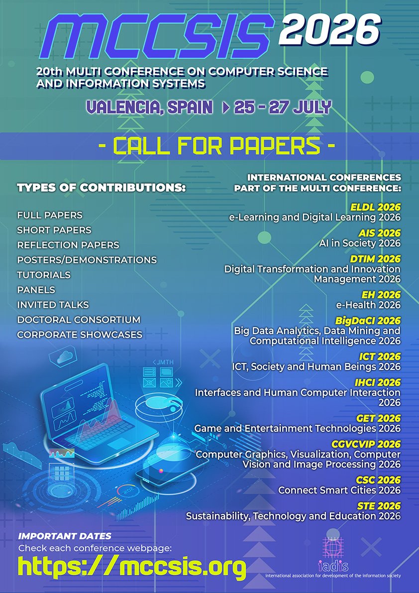We are a member of Crossref, a non-profit membership organization for scholarly publishing working to make content easy to find, link, cite and assess. With this connection, each published paper in IADIS Conferences’ Proceedings will be allocated a DOI (Digital Object Identifier) number for its fast and easy citation and indexation.
